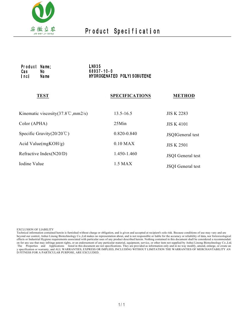 氢化聚异丁烯 LN935-SPEC